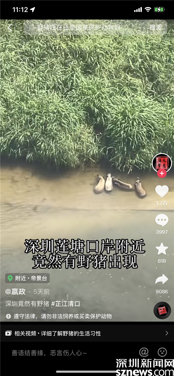 記者咨詢蓮塘街道和羅湖區(qū)城市管理綜合行政執(zhí)法局相關(guān)負(fù)責(zé)人表示,此次野豬出沒的地點的是在口岸對面,不屬于深圳管轄的范圍。此前,在仙湖植物園和梧桐山風(fēng)景區(qū)也頻現(xiàn)野豬身影。