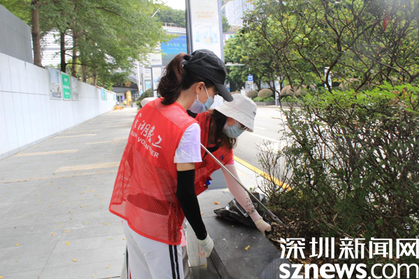 老圍社區(qū)蔡屋圍村民黃元娣和李梅英一組,她們平時是好姐妹,服務(wù)社區(qū)是好隊(duì)友。兩個人負(fù)責(zé)大劇院周圍的環(huán)境衛(wèi)生,毫不吝惜體力,花壇里的垃圾用垃圾夾不方便,就干脆用手抓。
