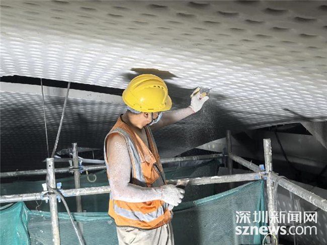 裝飾棒安裝階段,團隊創(chuàng)新采用“預埋螺桿+螺紋膠防脫+GRG粉及纖維絲背后捂綁”多重加固方案:在GRG底板中精準預埋定制螺桿,裝飾棒與螺桿螺紋連接,輔以高強度螺紋膠、GRG粉背后捂綁增強牢固性,確保裝飾棒在長期振動環(huán)境下穩(wěn)固不松動。華僑城項目負責人劉輝表示,從方案設計到工藝落地,每一步都精準把控,只為守住“精致工程”底線。