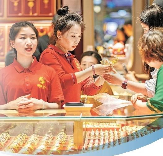 深圳羅湖水貝珠寶市場(chǎng),成為許多市民游客購(gòu)買黃金首飾的首選地。 深圳特區(qū)報(bào)記者 賴?yán)?攝