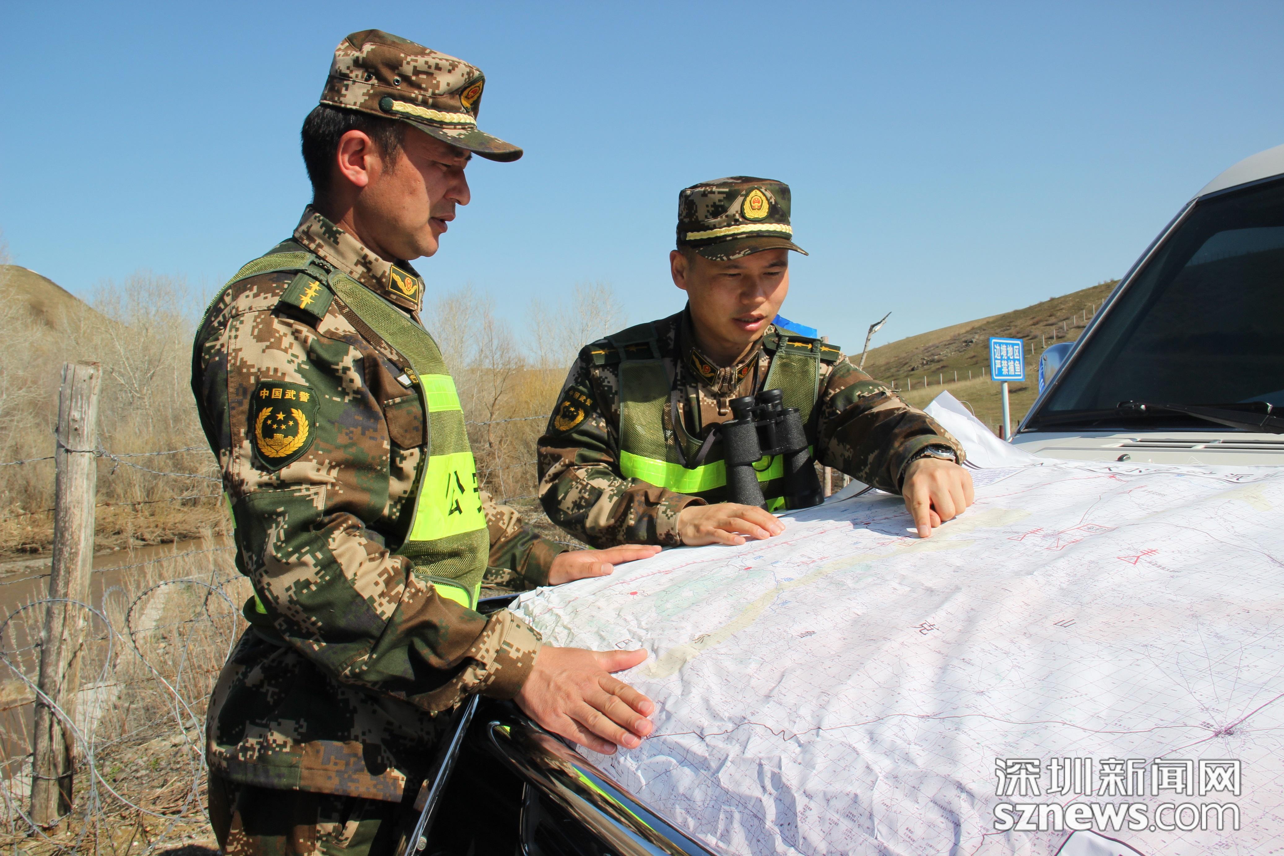 原新疆公安邊防現(xiàn)役警官的余章煥(右)與戰(zhàn)友在邊防線偵察。