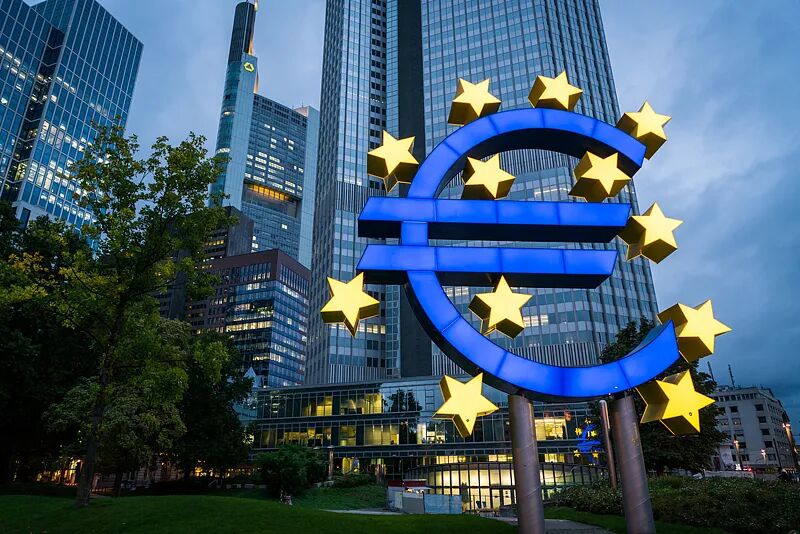 ▲位于德國(guó)法蘭克福銀行區(qū)的歐元塔。圖源:CFP