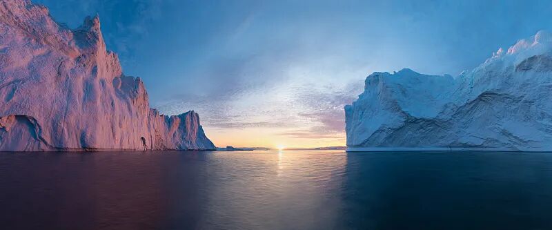 ▲格陵蘭島日落時(shí)分的海景全景。圖源:CFP