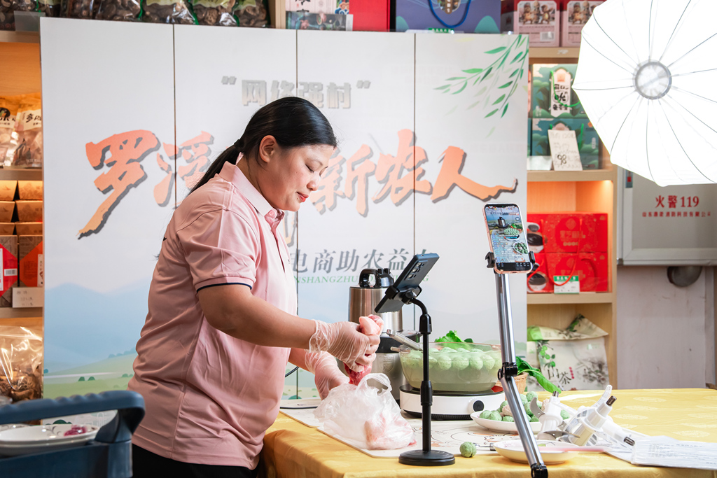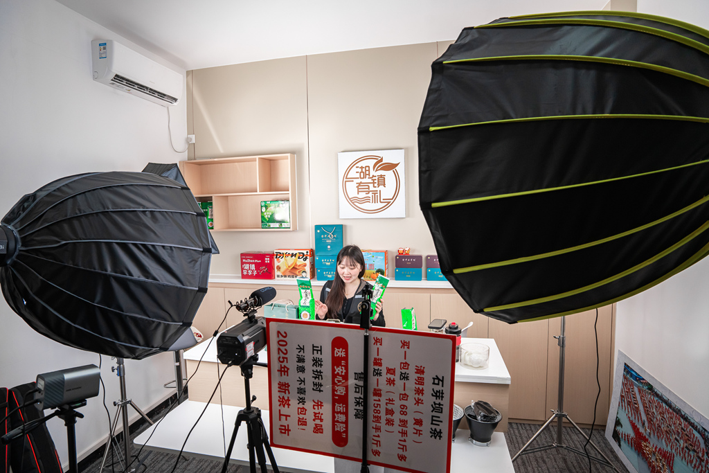 柏塘鎮(zhèn)羅浮金秋有限公司的直播間則彌漫著食物香氣。主播楊小霞正在直播制作客家特色蔬菜豬肉丸,周圍堆滿即將發(fā)貨的臘味禮盒?!拔覀兠恐苤辈ゼs5天,每天兩場,內(nèi)容以制作本地美食為主?!惫矩?fù)責(zé)人楊志豐說。這家“前店后廠”的企業(yè),不僅直播賣貨,更通過短視頻拍攝萬畝茶園等鄉(xiāng)村風(fēng)光,一條“爆款”視頻就能為茶山帶來持續(xù)一周的客流,真切體現(xiàn)了“流量帶來游客,游客帶動(dòng)消費(fèi)”的良性循環(huán)。從質(zhì)量檢測員轉(zhuǎn)型為主播的楊小霞,則見證了直播業(yè)態(tài)為本地群眾帶來的新機(jī)遇與新收入。