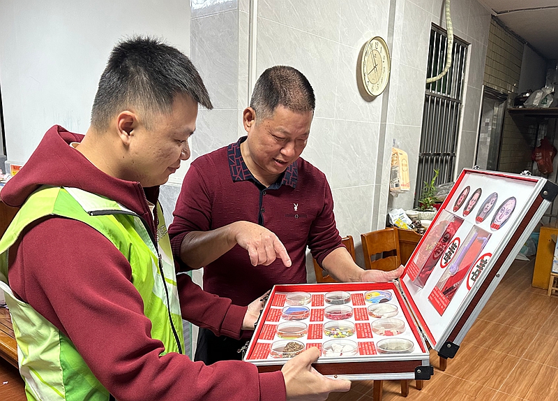 最受居民關(guān)注的當(dāng)數(shù)仿真毒品模型展示區(qū)。冰毒、海洛因等傳統(tǒng)毒品模型旁,偽裝成奶茶粉、巧克力、跳跳糖的新型毒品模型格外醒目。工作人員結(jié)合模型細(xì)致講解:“這些新型毒品極具迷惑性,往往打著‘潮流零食’‘網(wǎng)紅飲品’的幌子,實(shí)則對(duì)人體神經(jīng)系統(tǒng)、心血管系統(tǒng)危害極大,一旦沾染便難以戒除?!蓖瑫r(shí),工作人員通過(guò)近期發(fā)生的真實(shí)案例,剖析吸毒對(duì)個(gè)人健康的摧毀、對(duì)家庭幸福的破壞以及對(duì)社會(huì)秩序的擾亂,一個(gè)個(gè)真實(shí)案例讓現(xiàn)場(chǎng)居民深受觸動(dòng),不少家長(zhǎng)紛紛拿出手機(jī)拍攝模型特征,以便后續(xù)提醒孩子。