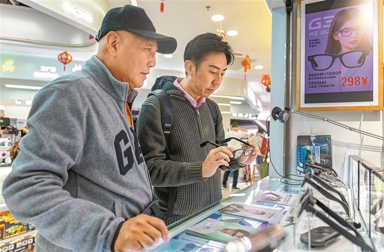 客商在華強北選購AI眼鏡。 深圳特區(qū)報記者 楊浩翰 攝