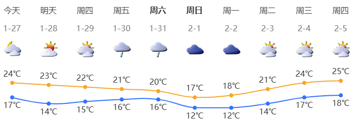 深圳今日多云到陰天,偶有分散小雨;氣溫17-24℃;東風(fēng)2-3級(jí);相對(duì)濕度65%-95%。