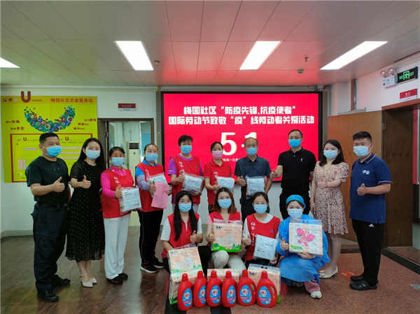 4月29日上午,深圳市羅湖區(qū)清水河街道梅園社區(qū)黨委、梅園社區(qū)工作站聯(lián)合梅園社區(qū)黨群服務(wù)中心在梅園社區(qū)新時代文明實踐站開展“防疫先鋒.抗疫使者”國際勞動節(jié)致敬“疫”線勞動者關(guān)愛活動。