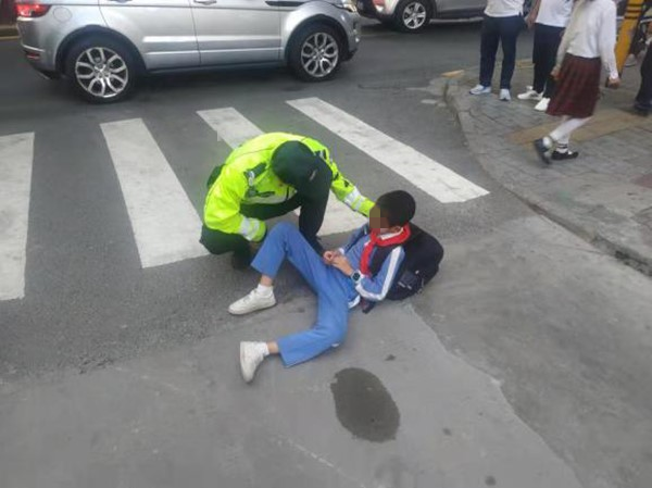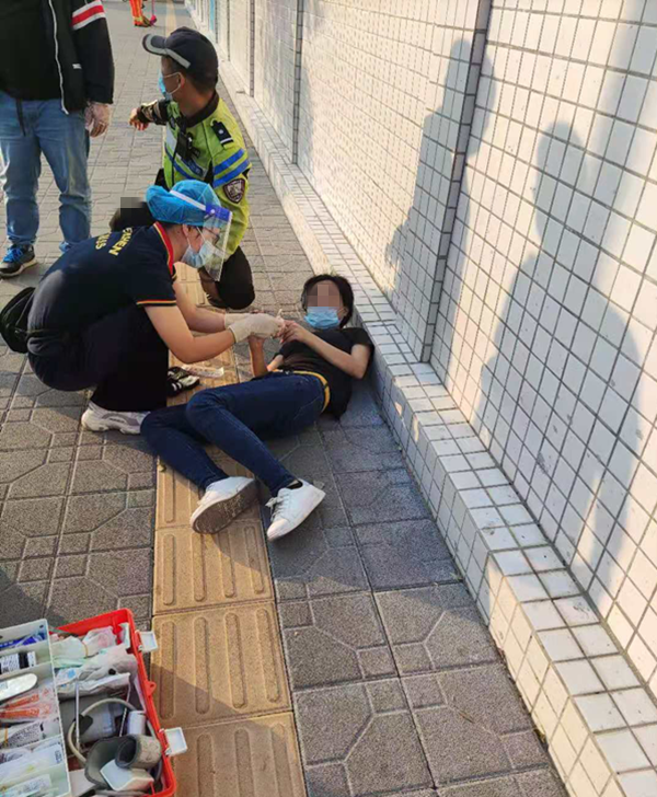 11月16日下午17時許,羅湖交警大隊東湖中隊鐵騎四組在東曉路疏導交通時,看見前方路口竟躺著一抹“藍色”,走前一看,原來是一名小學生。