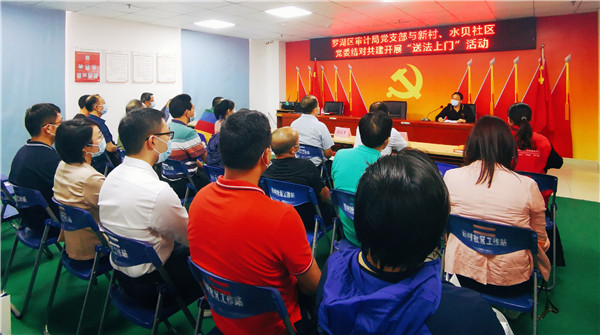 近日,羅湖區(qū)審計局黨支部“送法上門”,與新村、水貝社區(qū)黨委結對共建,舉辦《民法典》“進社區(qū)、進家庭”宣講活動。