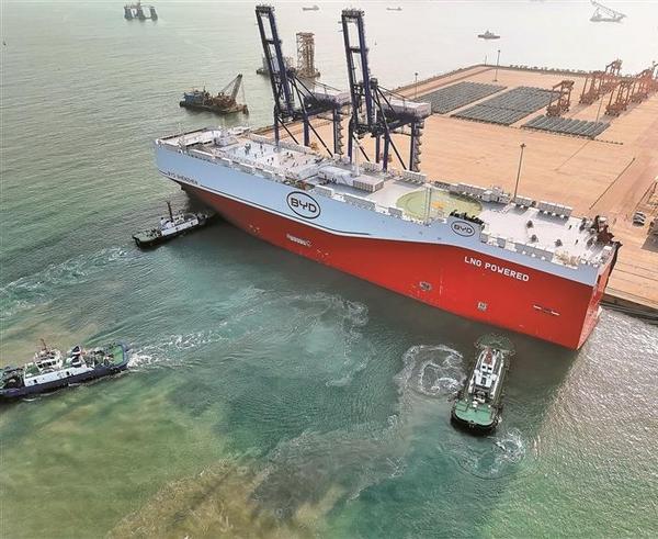 “廣貨行天下”春季行動正如火如荼地進(jìn)行,1月22日,又一批“廣貨”出?!獫M載6000余輛國產(chǎn)新能源汽車的大型滾裝船比亞迪“深圳號”,從深汕小漠國際物流港啟程駛往歐洲。