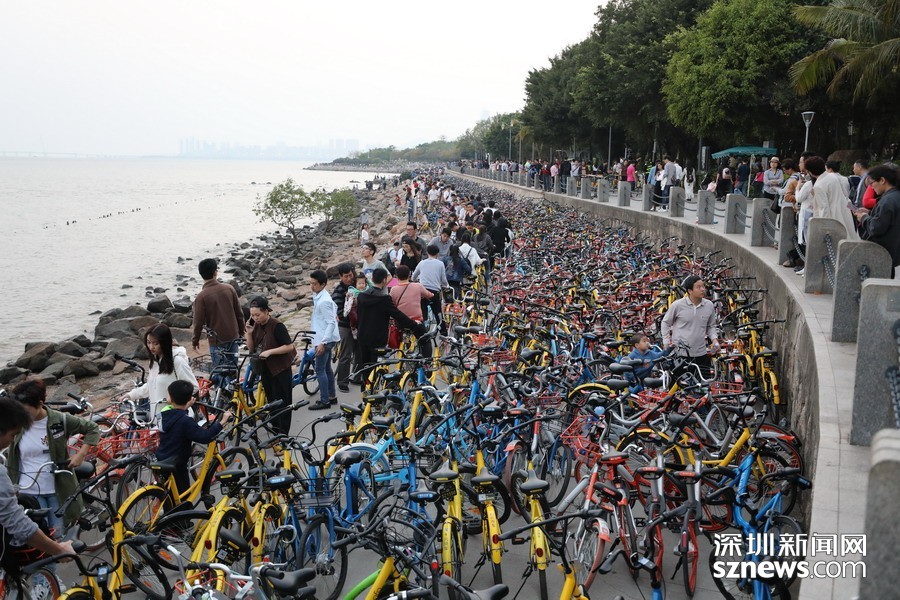 鵬城眼|深圳人假日勤動腳 共享單車“擠爆”深圳灣