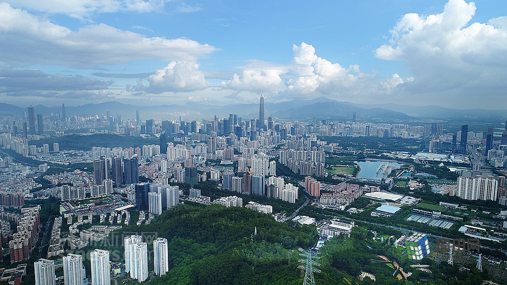 從梅林山高空可看見(jiàn)遠(yuǎn)處的平安大廈。