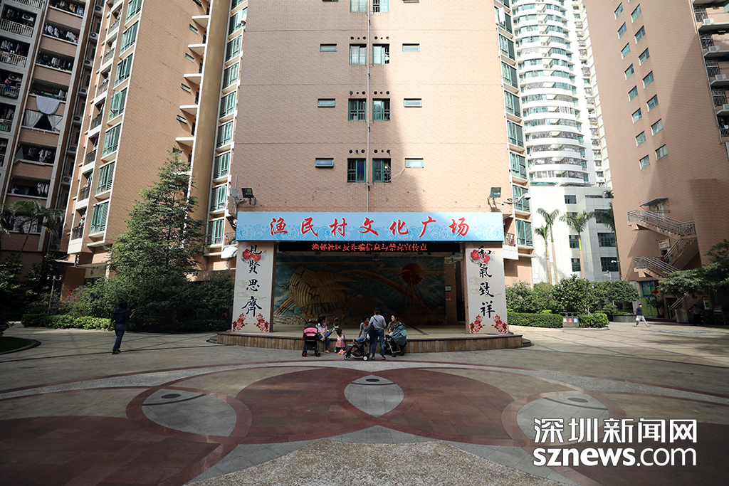 漁民村文化廣場是村里居民休閑娛樂的重要場所,不少媽媽帶著寶寶在廣場上休憩聊天