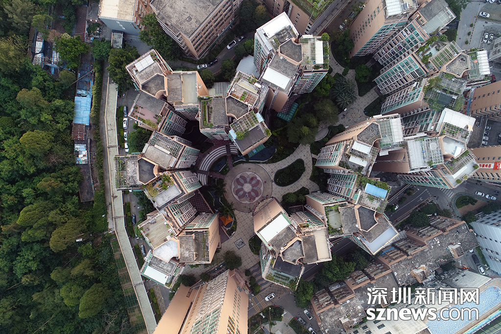 漁民村社區(qū)建筑多為高層小區(qū),社區(qū)中間開辟有居民文化廣場,從高空俯瞰,整個(gè)社區(qū)宛如一座美麗花園