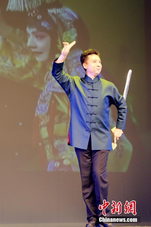 當?shù)貢r間2月25日晚,2018年“文化中國·四海同春”藝術(shù)團在美國南部城市休斯敦舉行慰僑綜藝晚會。圖為梅派第三代傳人胡文閣表演《霸王別姬》選段。休斯敦是2018年“文化中國·四海同春”藝術(shù)團赴美演出的首站,獲得休斯敦華人華僑的熱情回應。其后,該藝術(shù)團還將奔赴美國奧蘭多、舊金山、芝加哥演出。中新社記者曾靜寧 攝
