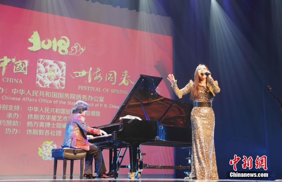 當?shù)貢r間2月25日晚,2018年“文化中國·四海同春”藝術(shù)團在美國南部城市休斯敦舉行慰僑綜藝晚會。圖為中國知名歌手蔡國慶獻唱《同一首歌》。休斯敦是2018年“文化中國·四海同春”藝術(shù)團赴美演出的首站,獲得休斯敦華人華僑的熱情回應。其后,該藝術(shù)團還將奔赴美國奧蘭多、舊金山、芝加哥演出。中新社記者曾靜寧 攝