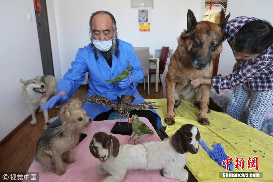 狗年到來,來找他將離世的愛犬和其他寵物做成標本的人絡繹不絕,動物們就這樣老郭手中復生。據老郭介紹,進入狗年,他接到了幾位主人送來的三只過世狗狗來做標本。從20歲出頭開始制作第一只貓頭鷹標本以來,在老郭手下復生的動物大到汗血賽馬、獅子、野豬,小到蜂鳥,近些年僅制作賽馬標本就有50匹,其它的寵物標本有數千余件。文字來源:法制晚報 圖片來源:視覺中國