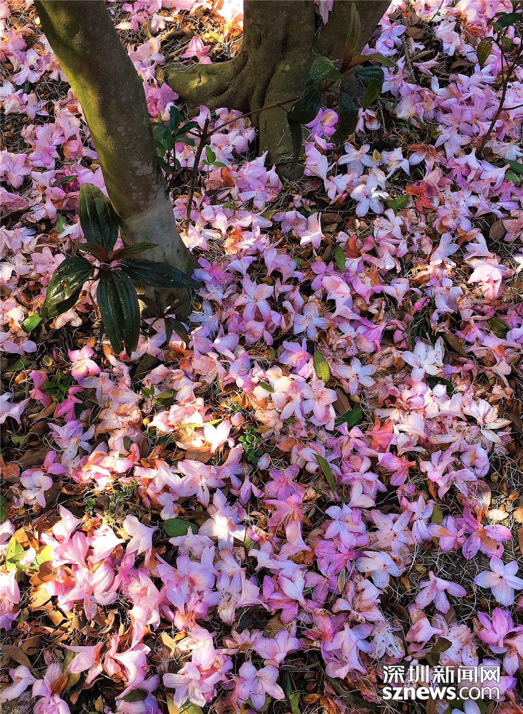 據(jù)了解,毛棉杜鵑花是深圳唯一的喬木型杜鵑,大家平時見到最多的杜鵑,如映山紅、錦繡杜鵑都是灌木類型。毛棉杜鵑花呈淡紫色、粉紅色或粉白色,艷麗清雅,世界上只有深圳才有大量的毛棉杜鵑資源。