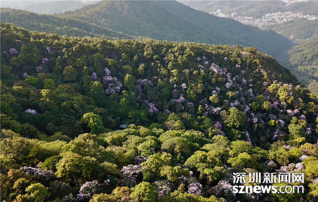 航拍梧桐山毛棉杜鵑花景