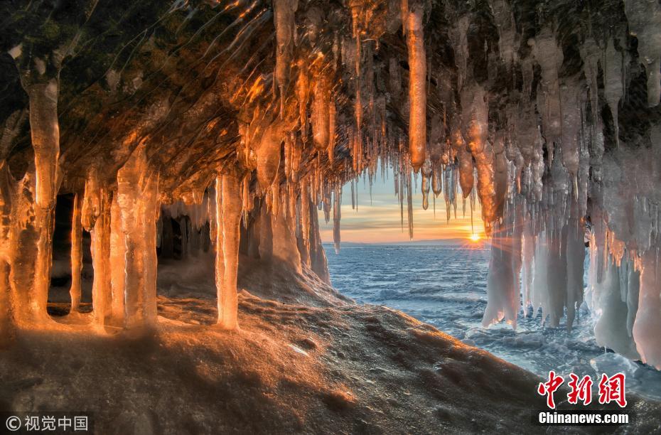 俄羅斯西伯利亞貝加爾湖,冰洞里成千上萬的冰錐營造了一種超現(xiàn)實的美景。39歲的攝影師安德烈(Andrey Grachev)在世界上最深的湖泊旁發(fā)現(xiàn)了這些洞穴。這些冰錐就像倒置的哥特式建筑的尖頂,有的甚至有10英尺(約3米)長。安德烈來自莫斯科,他說這一景觀是暴風(fēng)雨造成的,大量的水滲入洞內(nèi)后在低溫中被立刻凍住。圖片來源:視覺中國
