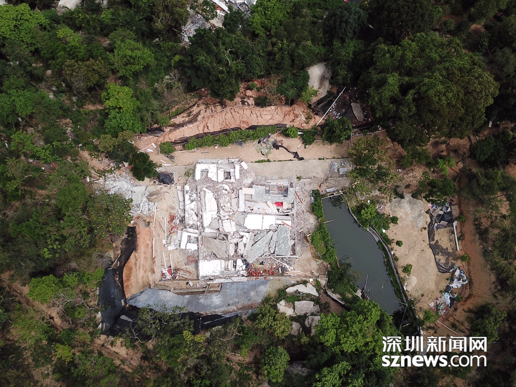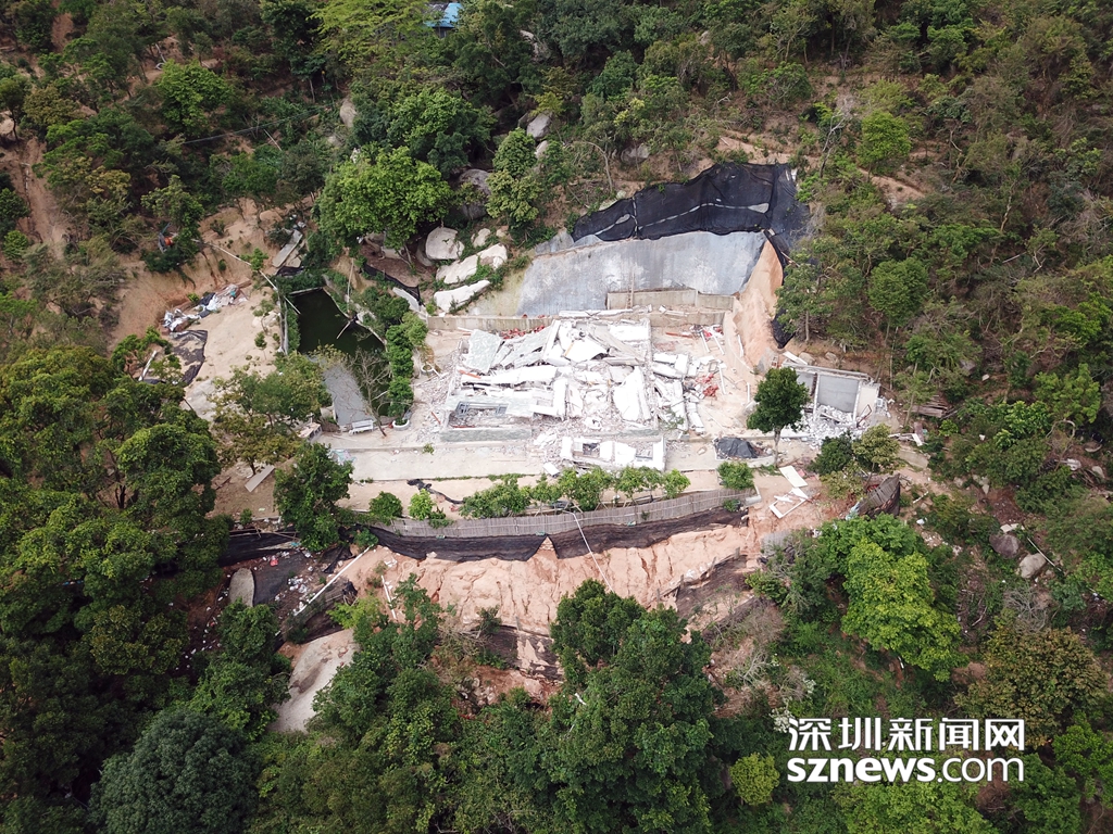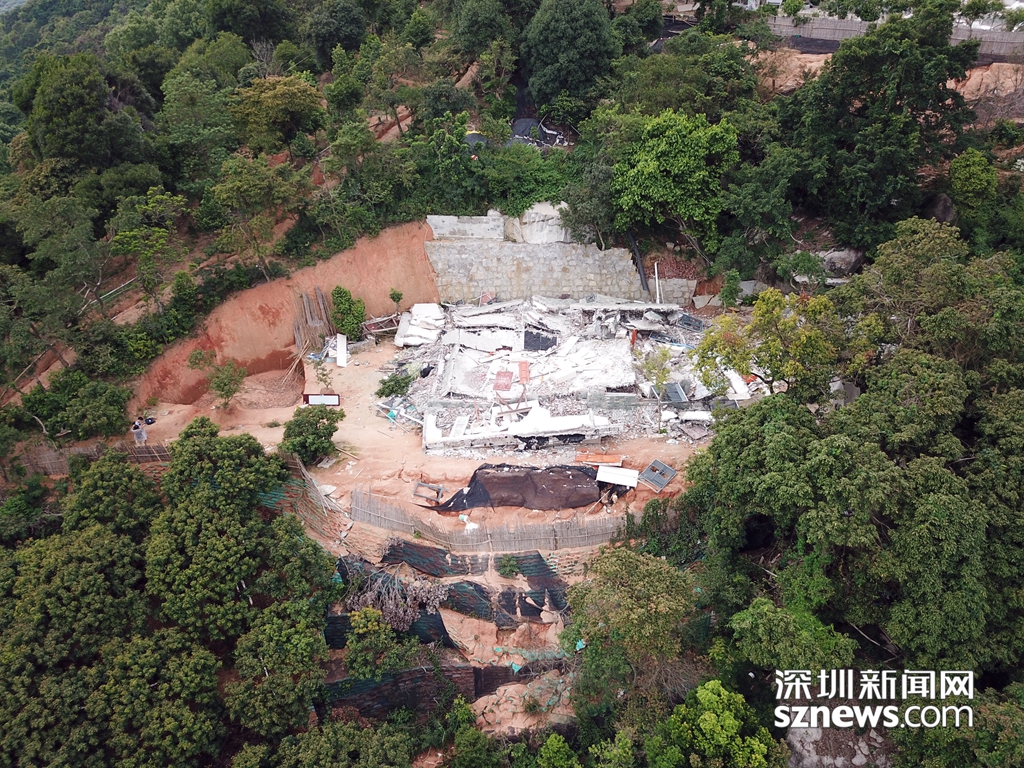 深圳新聞網(wǎng)無人機從高空拍下羊臺山兩處被拆除違法建筑