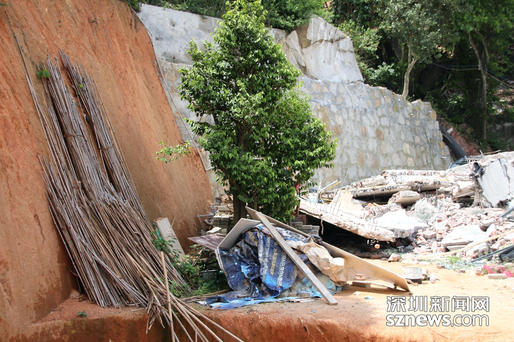 深圳新聞網(wǎng)記者抵達羊臺山第一處違法建筑地點(西麗麻磡村奇星路風門凹山腰靠山底一側)