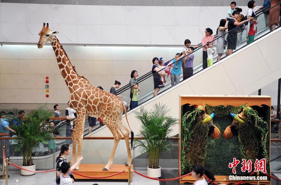 5月27日,各類(lèi)飛禽走獸活靈活現(xiàn)地出現(xiàn)在民眾的眼前。正在福建博物院展出的第四屆中國(guó)動(dòng)物標(biāo)本大賽的257件惟妙惟肖的標(biāo)本作品集中對(duì)外開(kāi)放,讓民眾如進(jìn)入“動(dòng)物世界”。本次大賽匯集了全國(guó)標(biāo)本制作企業(yè)、博物館、大專(zhuān)院校、研究所等60多家單位參加,標(biāo)本涵蓋哺乳類(lèi)、鳥(niǎo)類(lèi)、爬行類(lèi)、兩棲類(lèi)、魚(yú)類(lèi)等動(dòng)物類(lèi)群的皮張和骨骼標(biāo)本。主辦方希望通過(guò)標(biāo)本大賽,向公眾展現(xiàn)動(dòng)物世界的美麗,宣傳生物多樣性和生態(tài)文明,借鑒吸收國(guó)際標(biāo)本制作先進(jìn)經(jīng)驗(yàn),提高中國(guó)野生動(dòng)植物標(biāo)本制作的整體水平。圖為大賽參賽作品展吸引了許多民眾前來(lái)觀賞。中新社記者 張斌 攝
