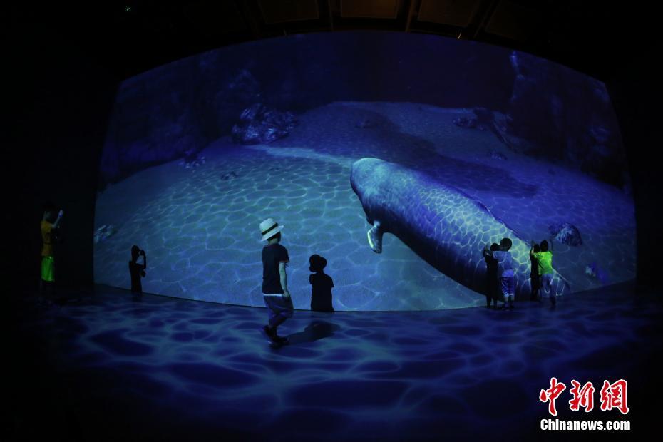 7月5日,民眾欣賞“尋夢海底兩萬里深海之光”沉浸式藝術展。當日,該展在北京嘉德藝術中心開幕。展覽是以“深海之光”為主題的海底光影沉浸式藝術展,創(chuàng)意藝術團隊利用數(shù)字技術和水打造出一個能夠感受到“生命”的深海世界。中新社記者楊可佳 攝