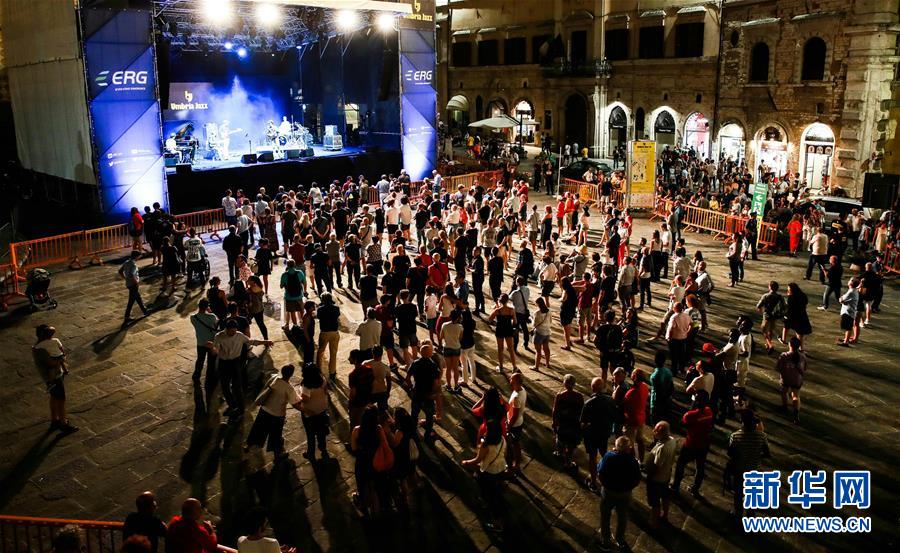 7月13日,在意大利佩魯賈,觀眾在翁布里亞爵士音樂節(jié)上觀看樂手演出。翁布里亞爵士音樂節(jié)于7月13日在翁布里亞大區(qū)山城佩魯賈開幕,將持續(xù)至22日。今年是該音樂節(jié)舉辦的第45周年。期間,中部山地古城的酒吧餐廳、青石板路和大小劇院都成為樂手的舞臺和觀眾欣賞音樂的福地。新華社記者金宇攝