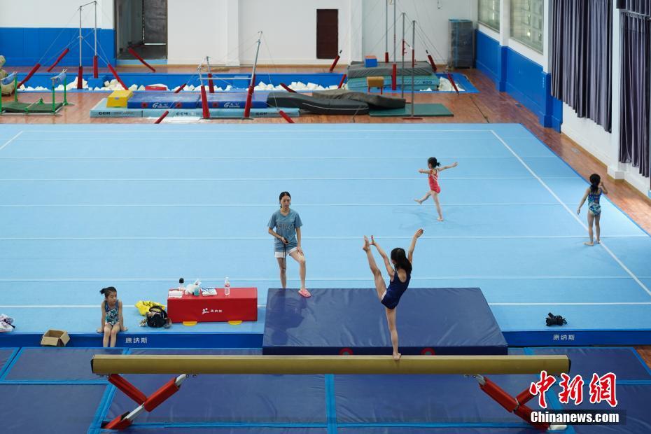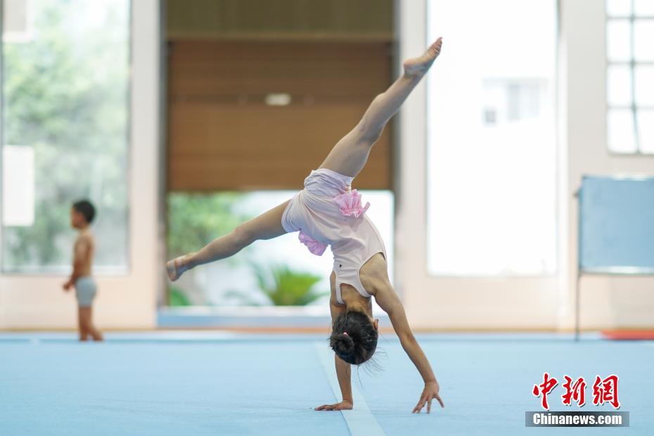 7月16日,貴州榕江,小學員在訓練中。位于月亮山深處的貴州省黔東南苗族侗族自治州榕江縣,數(shù)十年來堅持少年兒童體操培養(yǎng)、訓練,對于全縣有良好身體條件的少年兒童進行免費集中培訓。目前該縣每年有60余名兒童在業(yè)余體操運動學校進行訓練。炎炎夏日,孩子們不懼酷暑,刻苦訓練追尋著自己的“體操夢”。據(jù)了解,自1972年以來,榕江縣先后向貴州省體操隊、蹦床隊輸送了21名運動員;其中有6名運動員進入國家體操隊,10名運動員榮獲“國家健將級運動員”稱號,5名運動員榮獲“國際健將級運動員”稱號,其中體操名將劉榕冰是2014年體操世錦賽男團冠軍成員之一。2004年,榕江縣被貴州省體育局授予“貴州體操之鄉(xiāng)”稱號。中新社記者賀俊怡 攝