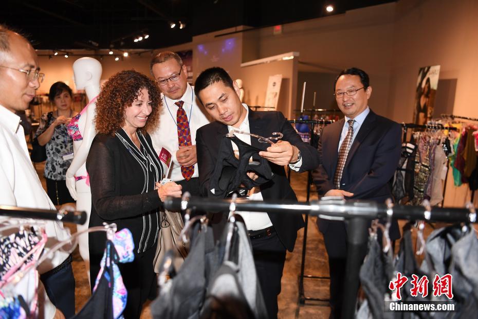 當(dāng)?shù)貢r間7月17日,深圳市內(nèi)衣行業(yè)協(xié)會在中美國際(美東)創(chuàng)業(yè)港——默特爾比奇市Waccoma Center舉行深圳內(nèi)衣產(chǎn)業(yè)推介會暨深圳內(nèi)衣美國展銷中心揭牌儀式。中美國際(美東)創(chuàng)業(yè)港聯(lián)合深圳市內(nèi)衣行業(yè)協(xié)會為深圳內(nèi)衣品牌進駐美東市場搭建綠色通道和產(chǎn)業(yè)孵化平臺,采用“時尚秀+靜態(tài)展”的形式,促進中美內(nèi)衣文化和時尚的交流。圖為默特爾比奇市市長布蘭達Brenda Bethune女士參觀深圳內(nèi)衣展廳。 中新社記者 陳文 攝