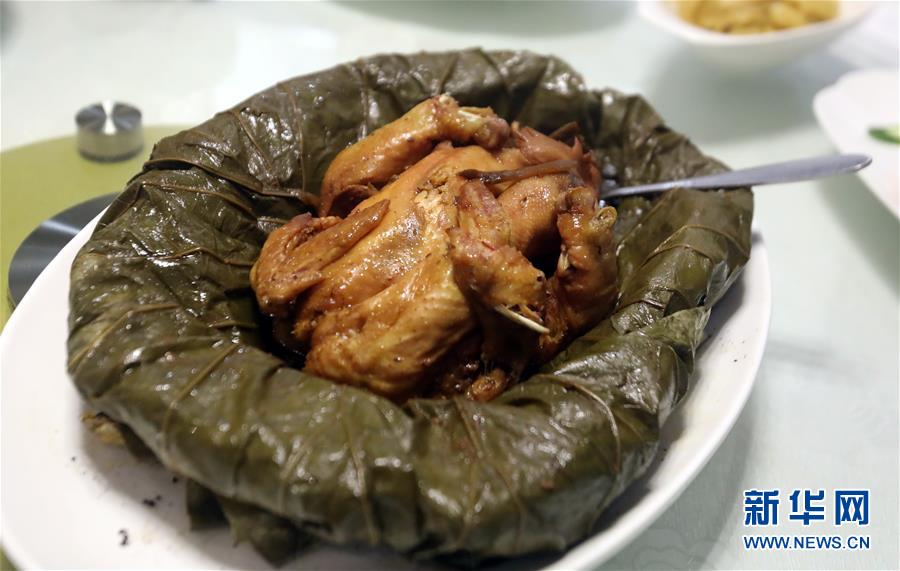 這是在香港灣仔杭州酒家拍攝的“叫化雞”(6月16日攝)。 金庸在武俠小說(shuō)《神雕俠侶》中借郭靖之口說(shuō)過(guò): “為國(guó)為民,俠之大者?!蔽鋫b精神在香港備受推崇,有其心向中華文化的情感基礎(chǔ)。在這個(gè)國(guó)際美食之都,品味舌尖上的武俠味,內(nèi)中的感覺(jué)別有深意。新華社記者 李鵬 攝