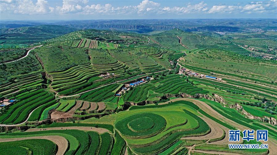 寧夏固原市彭陽縣金雞坪梯田公園(7月16日無人機拍攝)。新華社記者 王鵬 攝