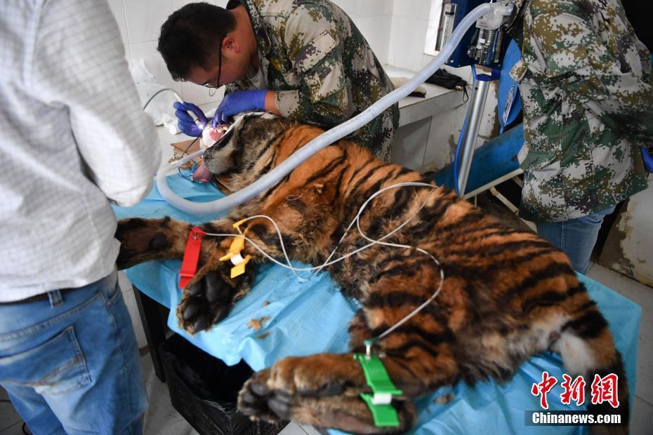 8月9日,位于昆明的云南野生動(dòng)物園獸醫(yī)通過呼吸麻醉的方式,為園中一只一歲的老虎清潔牙。 中新社記者 劉冉陽(yáng) 攝