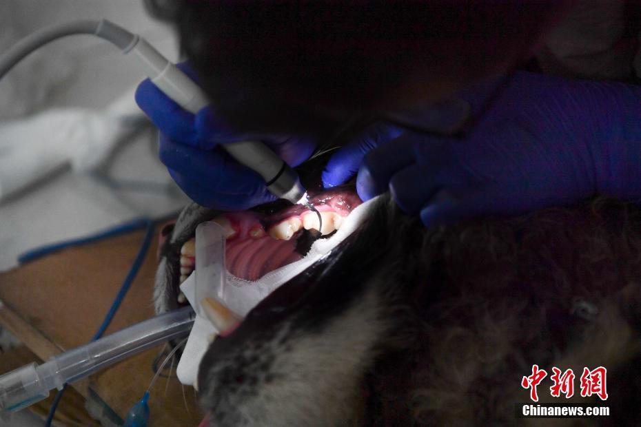 8月9日,獸醫(yī)使用洗牙機(jī)為老虎洗牙。當(dāng)日,位于昆明的云南野生動(dòng)物園獸醫(yī)通過呼吸麻醉的方式,為園中一只一歲的老虎清潔牙。中新社記者 劉冉陽 攝