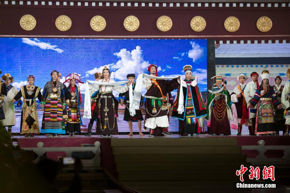 8月12日晚,由西藏職業(yè)技術(shù)學(xué)院與北京服裝學(xué)院共同打造的“凈美雪頓·美好生活”西藏民族服裝與服飾展演活動在拉薩舉行。現(xiàn)場通過傳統(tǒng)篇、現(xiàn)代篇與未來篇三個篇章,展演了藏族傳統(tǒng)服裝26套,設(shè)計創(chuàng)新服裝58套,共計84套服裝。圖為模特展示藏族傳統(tǒng)服飾。中新社記者何蓬磊 攝