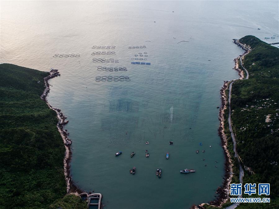 8月19日,空中俯瞰南麂島(無人機(jī)拍攝)。進(jìn)入8月,浙江省溫州市平陽縣南麂鎮(zhèn)海域上大片的大黃魚、貽貝等特色海產(chǎn)品養(yǎng)殖區(qū)域迎來豐收季節(jié),養(yǎng)殖戶們駕駛漁船在養(yǎng)殖區(qū)海域進(jìn)行打撈收獲,在碧海藍(lán)天下構(gòu)成了一幅“海上牧場”的美麗豐收景象。近年來,南麂鎮(zhèn)政府引導(dǎo)漁民養(yǎng)殖戶充分發(fā)揮“靠海吃?!钡馁Y源優(yōu)勢,大力發(fā)展海洋養(yǎng)殖經(jīng)濟(jì)和海島旅游經(jīng)濟(jì),實現(xiàn)了南麂由“生態(tài)美”向“產(chǎn)業(yè)美”,“產(chǎn)業(yè)美”向“經(jīng)濟(jì)美”的轉(zhuǎn)變。同時該鎮(zhèn)堅持以大黃魚、貽貝等為特色產(chǎn)業(yè)支撐,精準(zhǔn)發(fā)展高效海洋養(yǎng)殖業(yè),重點(diǎn)培養(yǎng)一批新型職業(yè)漁民,依靠專業(yè)技術(shù)支持,實現(xiàn)深海仿生養(yǎng)殖,讓好生態(tài)造就好品質(zhì),重點(diǎn)打造南麂養(yǎng)殖品牌,組建營銷網(wǎng)絡(luò),拓展特色海產(chǎn)品市場。新華社記者 徐昱攝
