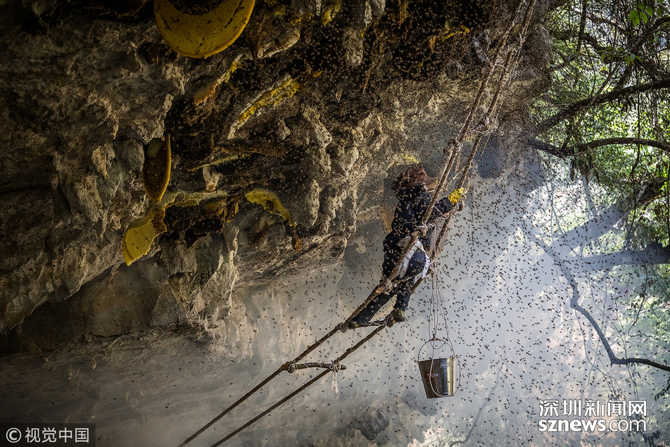 ?“最難采摘的崖蜜,是凹進(jìn)懸崖內(nèi)側(cè)3至5米的那種。”兩年來,小蕊親自跟采了十幾趟蜜,最怕遇到凹陷的蜜源。