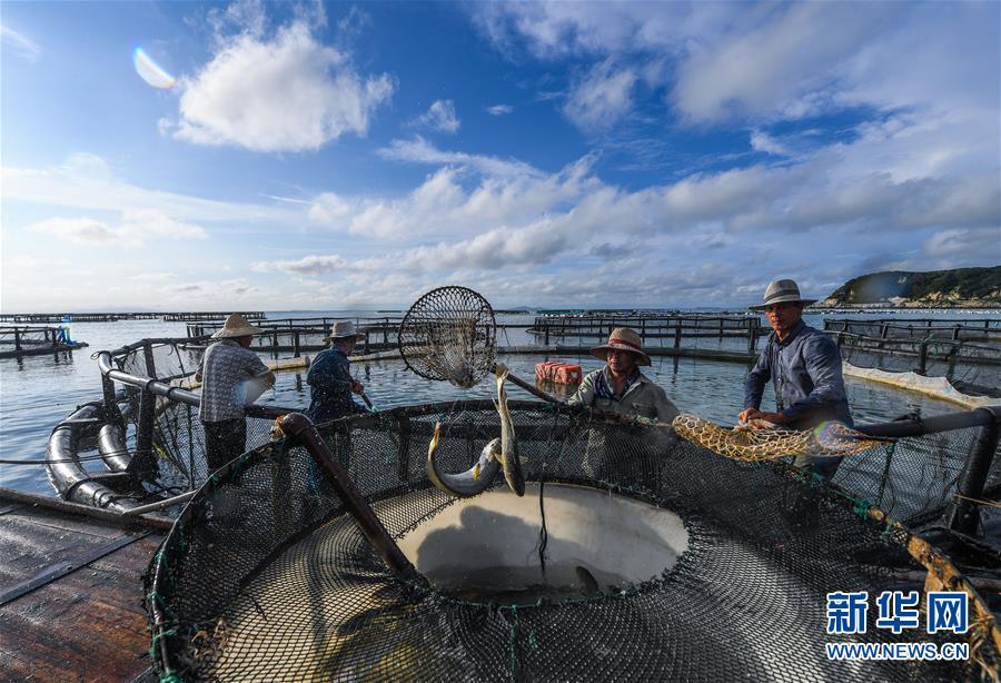 8月18日,南麂島海域內(nèi)的“海上牧場”養(yǎng)殖區(qū)內(nèi),漁民正捕撈大黃魚,處于仿生養(yǎng)殖環(huán)境的大黃魚需要生長2至3年。進(jìn)入8月,浙江省溫州市平陽縣南麂鎮(zhèn)海域上大片的大黃魚、貽貝等特色海產(chǎn)品養(yǎng)殖區(qū)域迎來豐收季節(jié),養(yǎng)殖戶們駕駛漁船在養(yǎng)殖區(qū)海域進(jìn)行打撈收獲,在碧海藍(lán)天下構(gòu)成了一幅“海上牧場”的美麗豐收景象。近年來,南麂鎮(zhèn)政府引導(dǎo)漁民養(yǎng)殖戶充分發(fā)揮“靠海吃海”的資源優(yōu)勢,大力發(fā)展海洋養(yǎng)殖經(jīng)濟(jì)和海島旅游經(jīng)濟(jì),實現(xiàn)了南麂由“生態(tài)美”向“產(chǎn)業(yè)美”,“產(chǎn)業(yè)美”向“經(jīng)濟(jì)美”的轉(zhuǎn)變。同時該鎮(zhèn)堅持以大黃魚、貽貝等為特色產(chǎn)業(yè)支撐,精準(zhǔn)發(fā)展高效海洋養(yǎng)殖業(yè),重點(diǎn)培養(yǎng)一批新型職業(yè)漁民,依靠專業(yè)技術(shù)支持,實現(xiàn)深海仿生養(yǎng)殖,讓好生態(tài)造就好品質(zhì),重點(diǎn)打造南麂養(yǎng)殖品牌,組建營銷網(wǎng)絡(luò),拓展特色海產(chǎn)品市場。新華社記者 徐昱攝