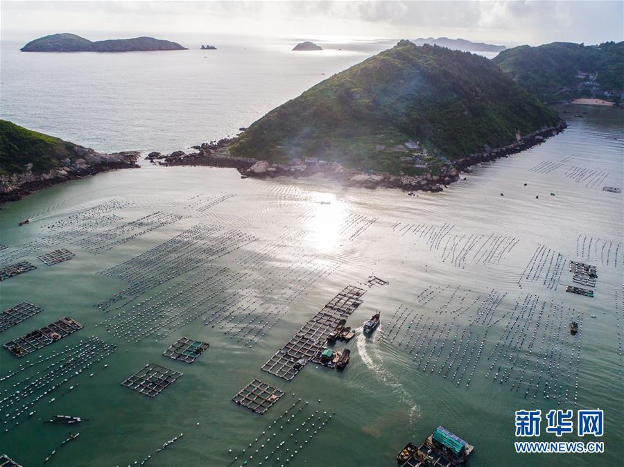 8月18日,南麂島海域的“海上牧場(chǎng)”養(yǎng)殖區(qū)內(nèi),漁民駕駛漁船進(jìn)行養(yǎng)殖作業(yè)。進(jìn)入8月,浙江省溫州市平陽(yáng)縣南麂鎮(zhèn)海域上大片的大黃魚(yú)、貽貝等特色海產(chǎn)品養(yǎng)殖區(qū)域迎來(lái)豐收季節(jié),養(yǎng)殖戶們駕駛漁船在養(yǎng)殖區(qū)海域進(jìn)行打撈收獲,在碧海藍(lán)天下構(gòu)成了一幅“海上牧場(chǎng)”的美麗豐收景象。近年來(lái),南麂鎮(zhèn)政府引導(dǎo)漁民養(yǎng)殖戶充分發(fā)揮“靠海吃海”的資源優(yōu)勢(shì),大力發(fā)展海洋養(yǎng)殖經(jīng)濟(jì)和海島旅游經(jīng)濟(jì),實(shí)現(xiàn)了南麂由“生態(tài)美”向“產(chǎn)業(yè)美”,“產(chǎn)業(yè)美”向“經(jīng)濟(jì)美”的轉(zhuǎn)變。同時(shí)該鎮(zhèn)堅(jiān)持以大黃魚(yú)、貽貝等為特色產(chǎn)業(yè)支撐,精準(zhǔn)發(fā)展高效海洋養(yǎng)殖業(yè),重點(diǎn)培養(yǎng)一批新型職業(yè)漁民,依靠專業(yè)技術(shù)支持,實(shí)現(xiàn)深海仿生養(yǎng)殖,讓好生態(tài)造就好品質(zhì),重點(diǎn)打造南麂養(yǎng)殖品牌,組建營(yíng)銷(xiāo)網(wǎng)絡(luò),拓展特色海產(chǎn)品市場(chǎng)。新華社記者 徐昱攝