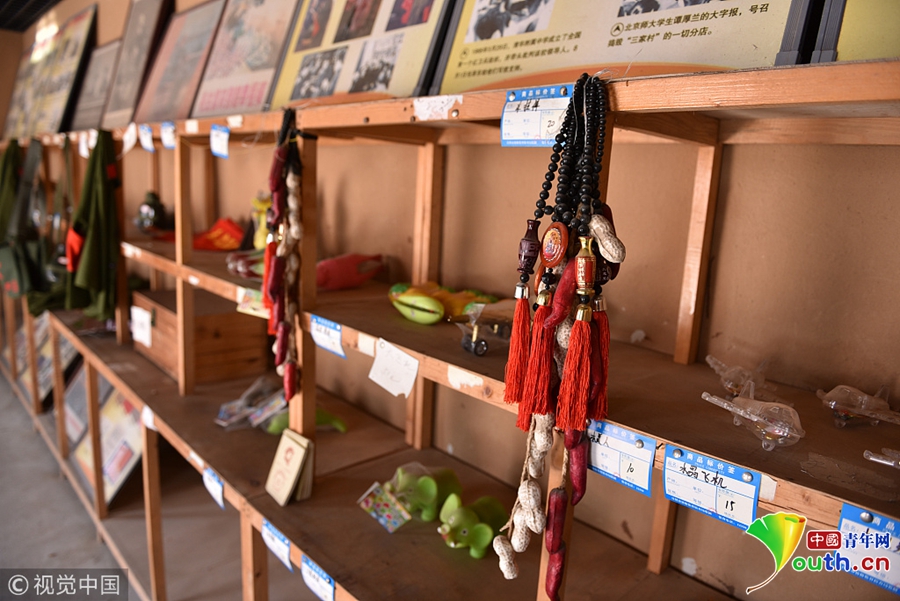 2018年3月11日,在山東省日照市五蓮縣街頭鎮(zhèn)大山深處的李崮寨村,商店內(nèi)擺放的旅游商品。 |