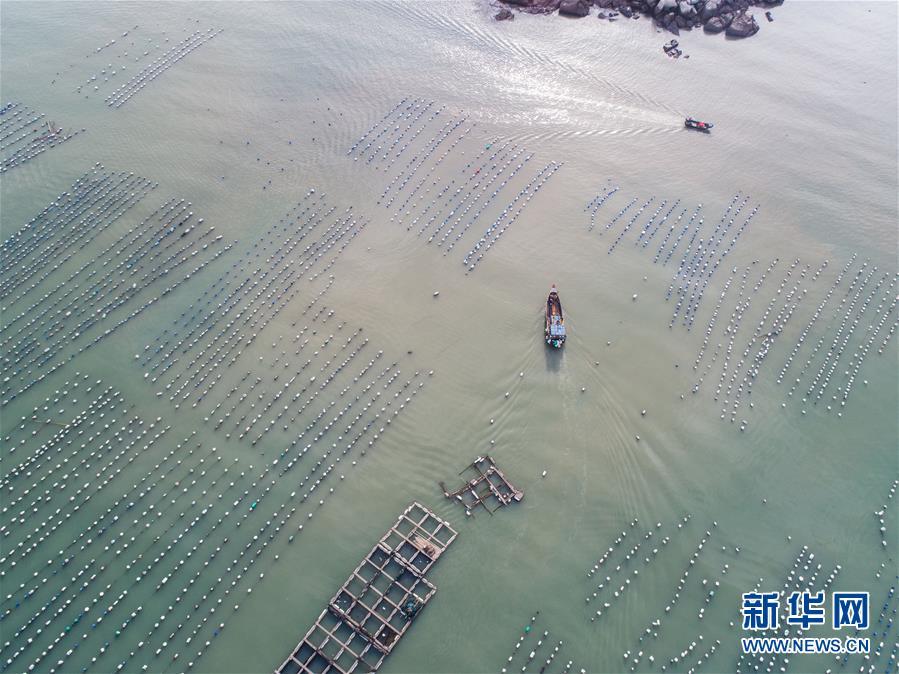 8月19日,空中俯瞰南麂島海域內(nèi)的“海上牧場(chǎng)”養(yǎng)殖區(qū)(無人機(jī)拍攝)。進(jìn)入8月,浙江省溫州市平陽縣南麂鎮(zhèn)海域上大片的大黃魚、貽貝等特色海產(chǎn)品養(yǎng)殖區(qū)域迎來豐收季節(jié),養(yǎng)殖戶們駕駛漁船在養(yǎng)殖區(qū)海域進(jìn)行打撈收獲,在碧海藍(lán)天下構(gòu)成了一幅“海上牧場(chǎng)”的美麗豐收景象。近年來,南麂鎮(zhèn)政府引導(dǎo)漁民養(yǎng)殖戶充分發(fā)揮“靠海吃海”的資源優(yōu)勢(shì),大力發(fā)展海洋養(yǎng)殖經(jīng)濟(jì)和海島旅游經(jīng)濟(jì),實(shí)現(xiàn)了南麂由“生態(tài)美”向“產(chǎn)業(yè)美”,“產(chǎn)業(yè)美”向“經(jīng)濟(jì)美”的轉(zhuǎn)變。同時(shí)該鎮(zhèn)堅(jiān)持以大黃魚、貽貝等為特色產(chǎn)業(yè)支撐,精準(zhǔn)發(fā)展高效海洋養(yǎng)殖業(yè),重點(diǎn)培養(yǎng)一批新型職業(yè)漁民,依靠專業(yè)技術(shù)支持,實(shí)現(xiàn)深海仿生養(yǎng)殖,讓好生態(tài)造就好品質(zhì),重點(diǎn)打造南麂養(yǎng)殖品牌,組建營(yíng)銷網(wǎng)絡(luò),拓展特色海產(chǎn)品市場(chǎng)。新華社記者 徐昱攝
