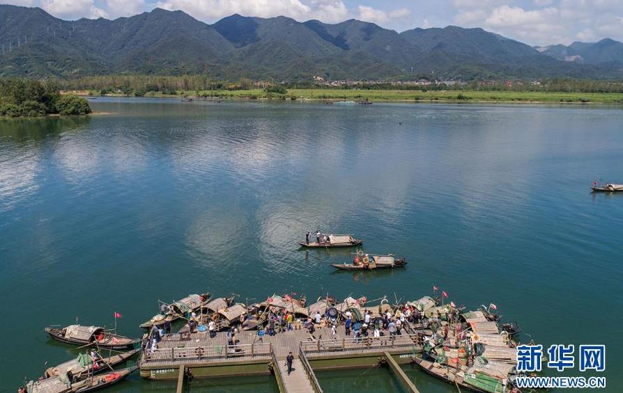 9月18日,漁民們乘坐漁船在富春江里捕撈江鮮(無(wú)人機(jī)拍攝)。 當(dāng)日,浙江省杭州市富陽(yáng)區(qū)場(chǎng)口鎮(zhèn)東梓關(guān)村開(kāi)啟“江鮮大會(huì)”,數(shù)十艘小漁船一起駛向富春江江面,拉開(kāi)了秋分節(jié)氣前捕撈江鮮的序幕。 東梓關(guān)村有著1000多年歷史,水陸交通方便,自古就是富春江南岸重要的商貿(mào)集散地,素有富春江“東流第一關(guān)”之稱。隨著近年來(lái)美麗鄉(xiāng)村建設(shè)的推進(jìn),東梓關(guān)村著力打造白墻黛瓦的江南民居,同時(shí)依托富春江豐富的江鮮魚(yú)類資源,在秋季舉辦特色“江鮮大會(huì)”,通過(guò)舉辦江鮮捕撈體驗(yàn)、江鮮第一鍋開(kāi)鍋、百鮮宴、鄉(xiāng)村小型音樂(lè)會(huì)、農(nóng)家菜大賽等活動(dòng),吸引各地游客前來(lái)感受富春江漁民豐收的喜悅和江南千年古村的獨(dú)特魅力,推動(dòng)鄉(xiāng)村特色旅游發(fā)展。 新華社記者徐昱攝
