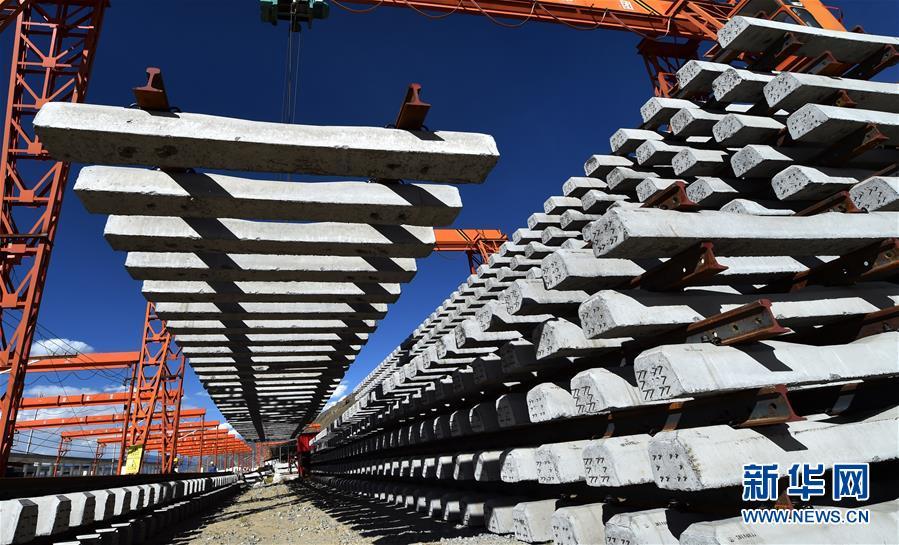 9月19日,在位于西藏拉薩曲水縣的中鐵十一局三公司協(xié)榮鋪架基地,用于架設川藏鐵路拉薩至林芝段(拉林鐵路)的首批軌排完成生產(chǎn)下線。據(jù)悉,拉林鐵路鋪軌任務全長400余公里,需要生產(chǎn)軌枕44萬多根。 新華社記者 覺果 攝