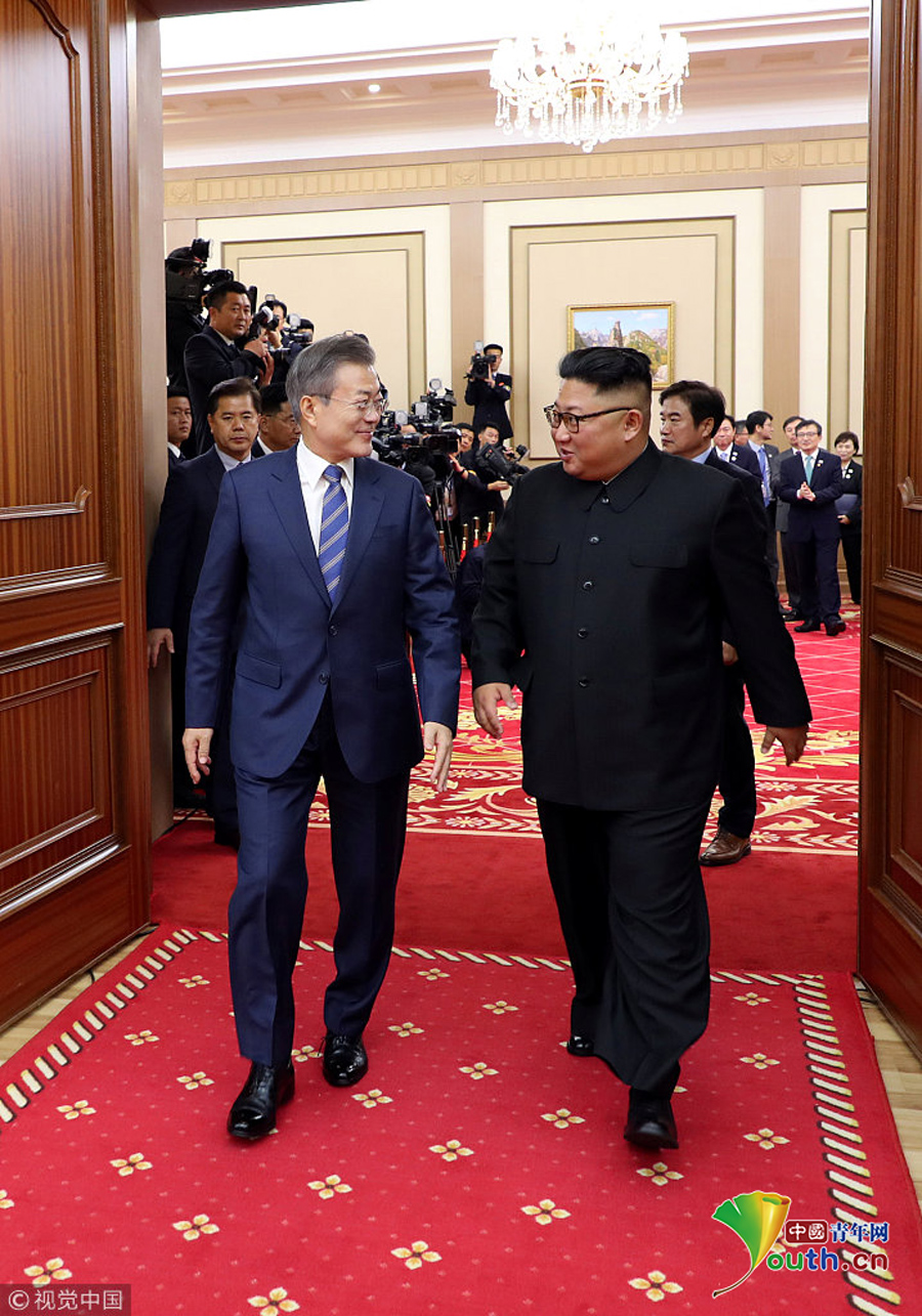 文在寅與金正恩在三池淵招待所午餐后漫步私聊