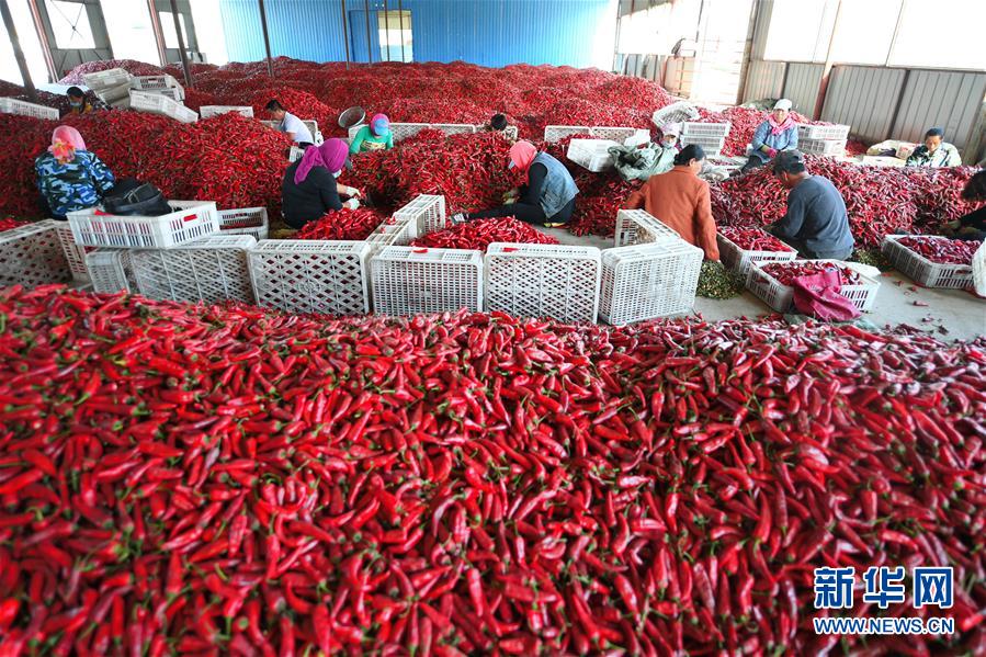 9月16日,阜城縣王集鄉(xiāng)南張莊村農(nóng)民在整理收獲的辣椒。近年來,河北省阜城縣王集鄉(xiāng)在推進產(chǎn)業(yè)富民過程中,積極引導農(nóng)民調(diào)整農(nóng)業(yè)產(chǎn)業(yè)結構,按照品種特色化、種植規(guī)模化、產(chǎn)銷一體化的“公司+基地+農(nóng)戶”的經(jīng)營模式,鼓勵農(nóng)民發(fā)展特色辣椒種植,推行“訂單種植”模式,開辟出了一條農(nóng)民創(chuàng)收新路徑。目前,阜城縣王集鄉(xiāng)辣椒種植面積3100余畝,每畝年收益2500元以上,帶動當?shù)剞r(nóng)民實現(xiàn)增收。新華社記者朱旭東攝