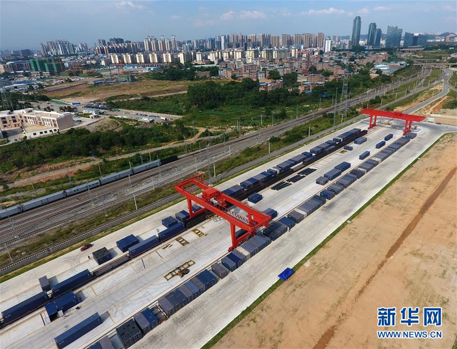 這是正在作業(yè)的南寧鐵路物流中心(5月23日無(wú)人機(jī)拍攝)。 廣西壯族自治區(qū)成立60年來(lái),鐵路建設(shè)發(fā)生翻天覆地的變化。來(lái)自中國(guó)鐵路南寧局集團(tuán)有限公司的數(shù)據(jù)顯示,1958年廣西鐵路總里程為1346.3公里,如今廣西鐵路總里程達(dá)5191公里。廣西與周邊相鄰省份間實(shí)現(xiàn)動(dòng)車(chē)“公交化”開(kāi)行。此外,北部灣港—重慶班列、東盟海產(chǎn)品冷鏈班列、“百色一號(hào)”果蔬專(zhuān)列等的開(kāi)通和運(yùn)營(yíng),強(qiáng)化了鐵路供給的針對(duì)性和有效性。鐵路成為助推廣西經(jīng)濟(jì)社會(huì)快速發(fā)展的“大動(dòng)脈”。 新華社記者陸波岸攝