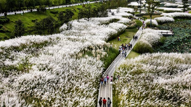漢江濕地秋意濃 蘆花荻荻醉游人