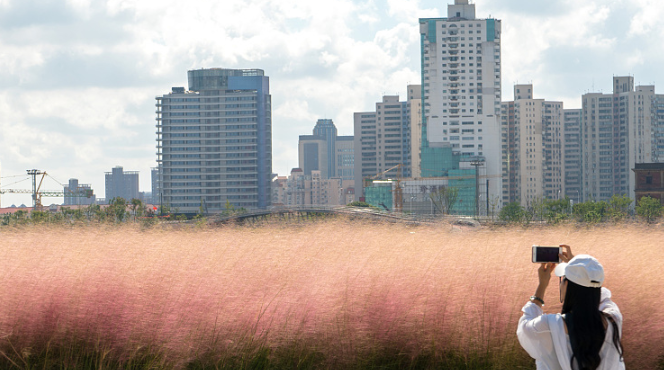 上海楊浦濱江粉黛亂子草成片盛開 美 ...